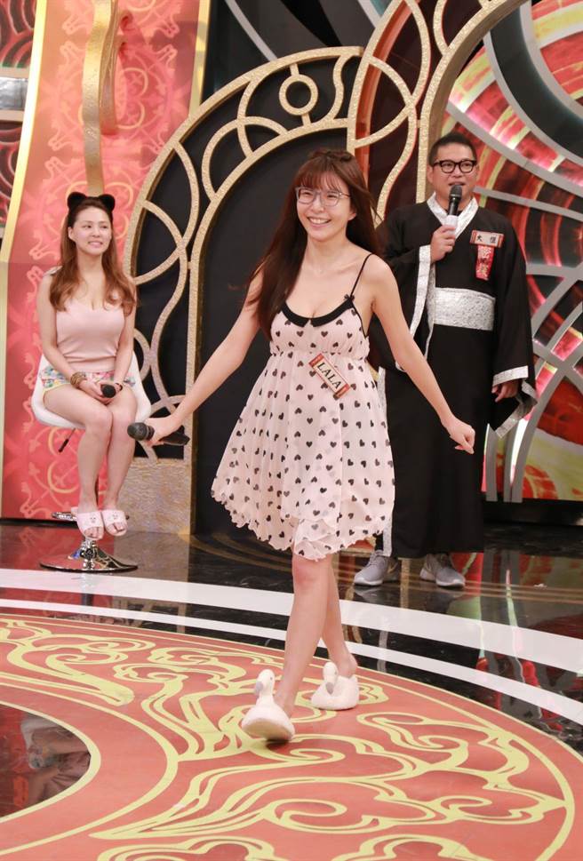 ▼Lala還說自己有大小眼,平時會貼家姊妹矯正。提起自己的素顏,她表示卸妝前後差異度大概為70分。不過Lala的E奶不是假的,她穿著低胸睡衣和天鵝拖鞋上台後,身材還是非常棒。