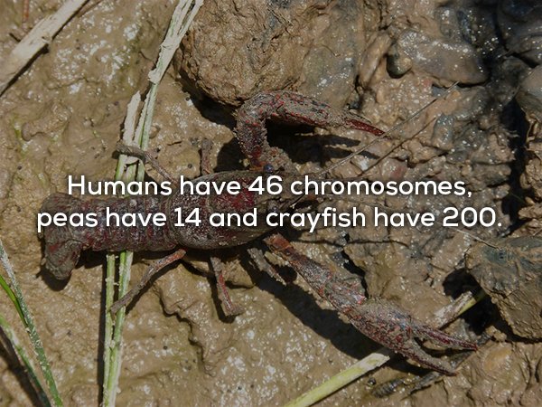 ▼人類擁有46組染色體,豌豆有14組,淡水龍蝦擁有200組