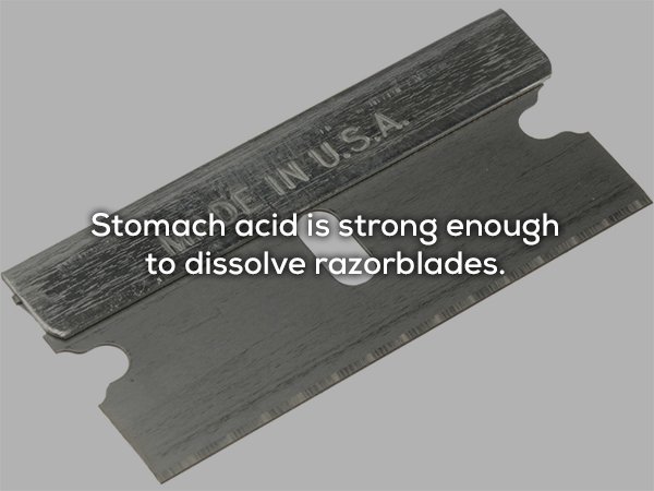 ▼胃酸的酸性強大到足以融化刮鬍刀片