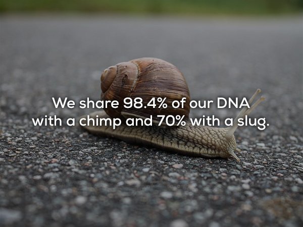 ▼我們的DNA有98.4%與黑猩猩吻合,有70%與蛞蝓吻合