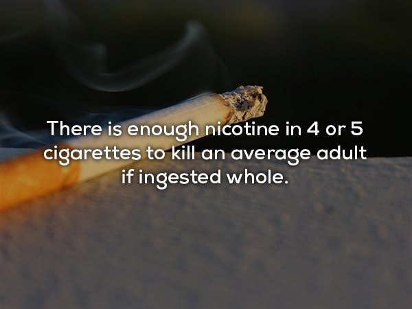 ▼一次攝取四五支煙的尼古丁含量,能夠殺死一個成年人