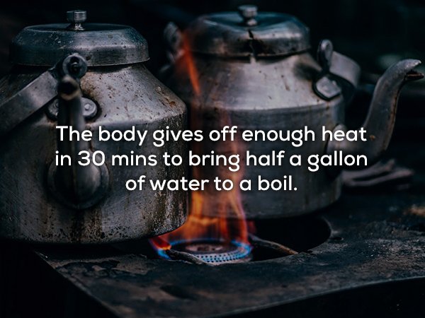 ▼人在30分鐘內製造的熱能足以讓1加侖水沸騰