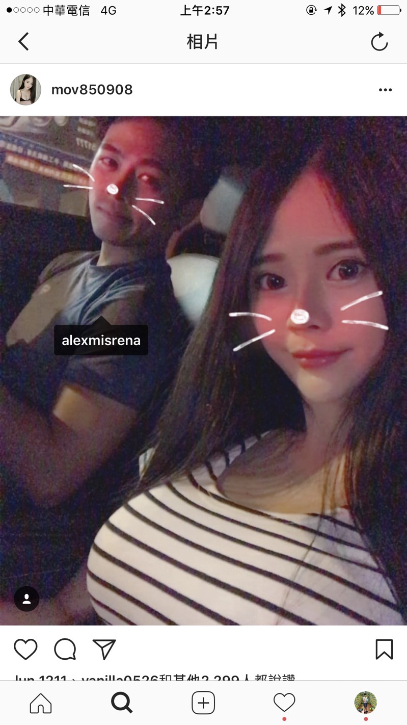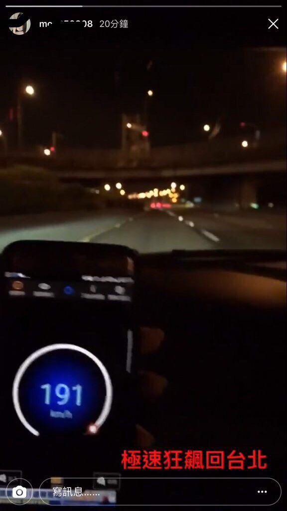 ▼原來當天她男友開著跑車載她出去,在回台北時竟然在國道上狂飆到時速191公里,過程中還將雙手放開。而謝仁馨不僅沒有阻止他,還將這一切透過IG直播,過後還將照片放上IG的顯示動態。