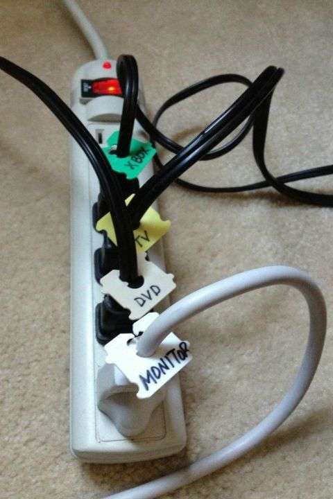▼將電源線分門別類,才知道每一條電線對應的是哪一個電器。