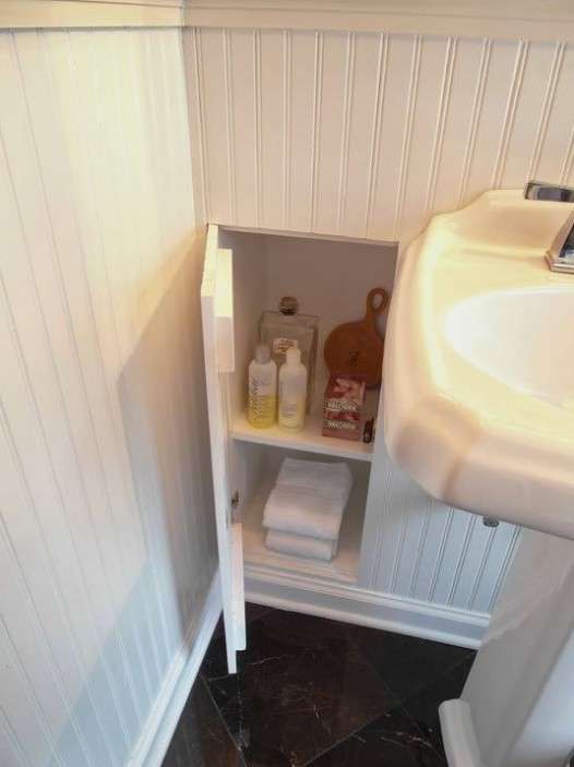▼浴室可以做一個「暗門」,將不常用的用品都放在裡面。