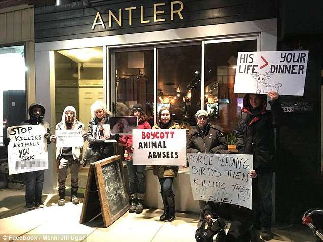 2018年03月31日多倫多有一間名為「鹿角」(Antler)的餐廳,這間餐廳主要使用當地的食材烹飪,菜單上有野豬肉、鹿肉等等。幾週前,一些素食主義者來到餐廳門前,拿著寫有「謀殺」等字眼的標語抗議,指責餐廳謀殺、虐待動物。