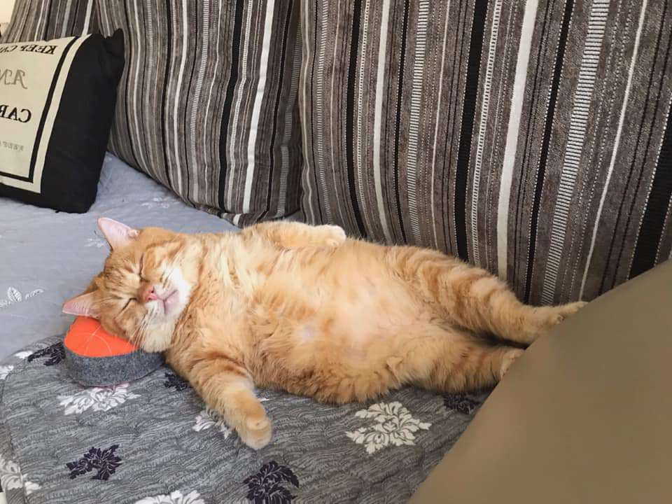 網友們看到肥祥呼呼大睡的照片,紛紛留言說:「太療癒了吧」、「好想揉肚子」、「根本是加菲貓了」、「明顯工讀生是肥宅」、「牠真的覺得很有安全感才能這樣」。肥祥可能是流浪的時候太累了,現在才會這麼愛睡,想要睡回本吧~