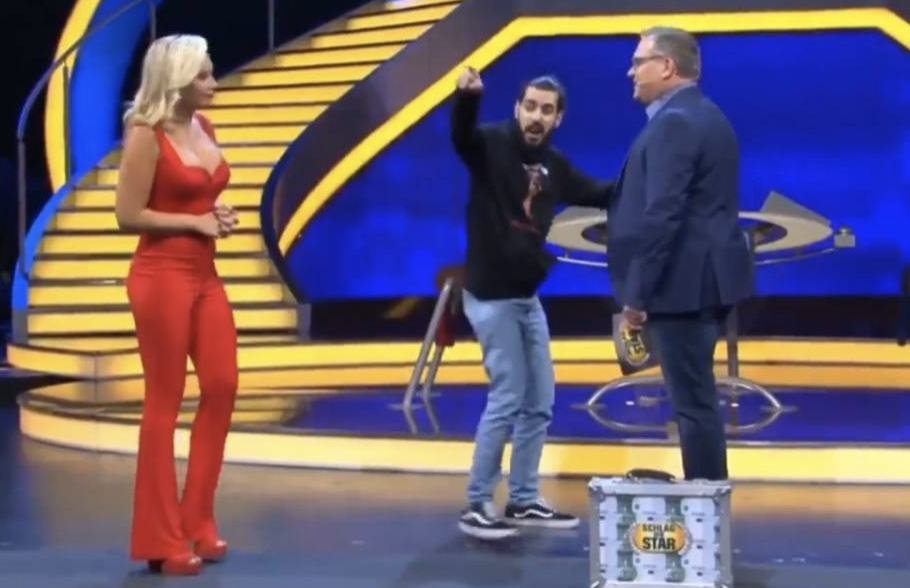 ▼這檔節目是在德國電視播放的《BSchlag den Raab》。這是一檔遊戲節目,參賽者們要在多個項目中挑戰一位名人,然後根據勝利的積分發給獎金。沒想到在上週末節目的空檔,一名男子突然跑上舞台,大聲詢問主持人Elton「GTA6在哪」,還要求Elton「對鏡頭呼喊GTA6快點發售」。