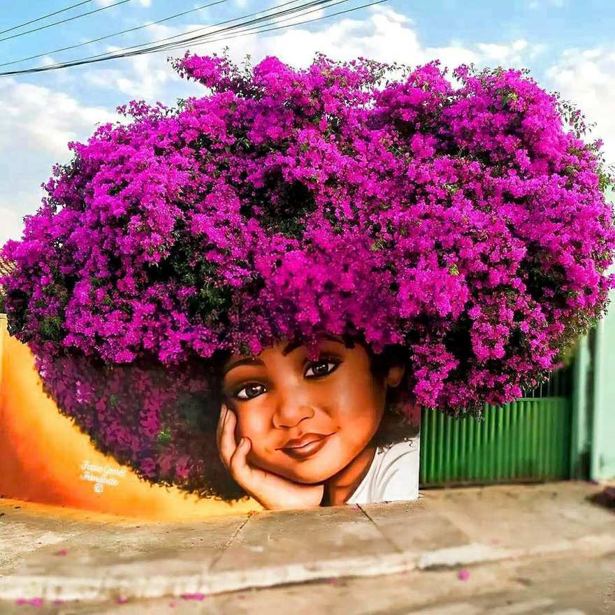 2021年09月16日街頭藝術最早出現於20世紀60年代的美國,後來在西方流行起來。很多人對街頭藝術有誤解,認為街頭塗鴉就是亂塗亂畫,但這其實是街頭巷尾間的一種藝術表達方式。巴西街頭藝術家Fábio Gomes Trindade將城市環境與自然元素巧妙結合起來。他用噴漆畫出模特兒的臉,自然界的花草樹木就是頭髮!快來欣賞一下他的作品吧~