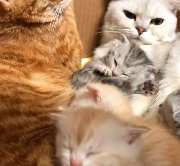 ▼影片中的貓媽媽非常溫柔,貓爸爸卻擺著一張臭臉,不過這也能夠理解,一次照顧5個小孩真的太累了!