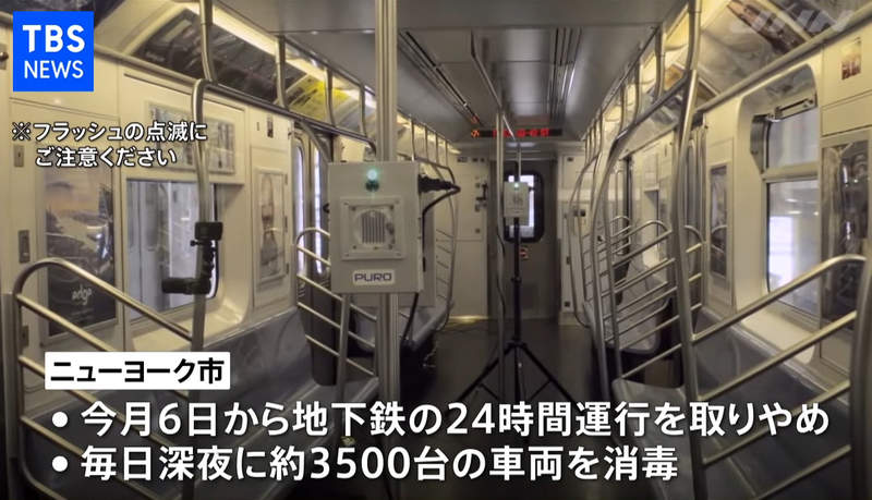 ▼很多公共場所都有紫外線燈,比如紐約地鐵上,但都是深夜地鐵停運後才會開啟的:
