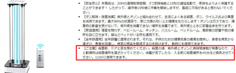 ▼紫外線燈的使用說明大多會寫:「長期照射紫外線對人體有害,殺菌時請遠離動植物。」