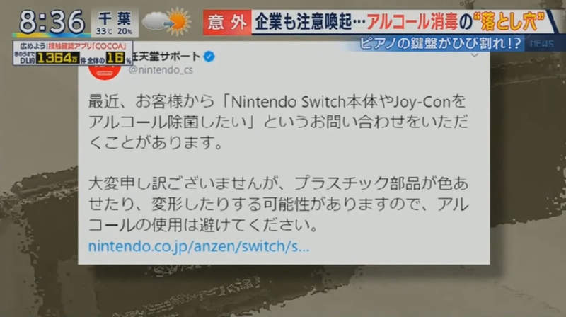 ▼除了皮革產品,還有很多公司警告客人,千萬不要濫用酒精來擦拭產品。比如任天堂就發表聲明說:「有客人諮詢能否用酒精消毒Switch主機本體或Joy-con手把,這可能造成塑膠褪色或變形,請不要使用酒精消毒。」