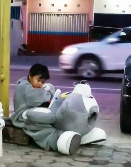 ▼今年8月底,一位叫Rahmadi的網友在IG上分享了一段影片。影片中,一個布偶工讀生正坐在路邊休息。下一秒他拿下頭套,大家這才發現那是一個小弟弟!這讓網友們非常吃驚,這麼小的孩子就出來工作了?