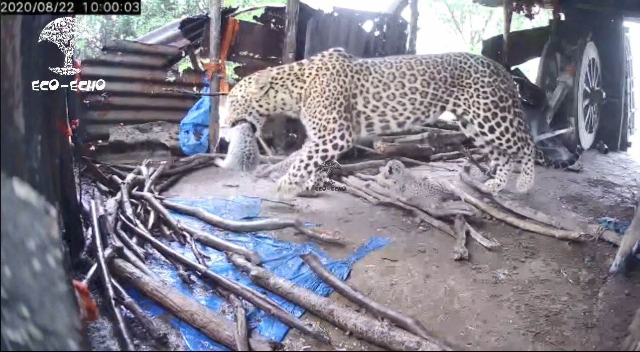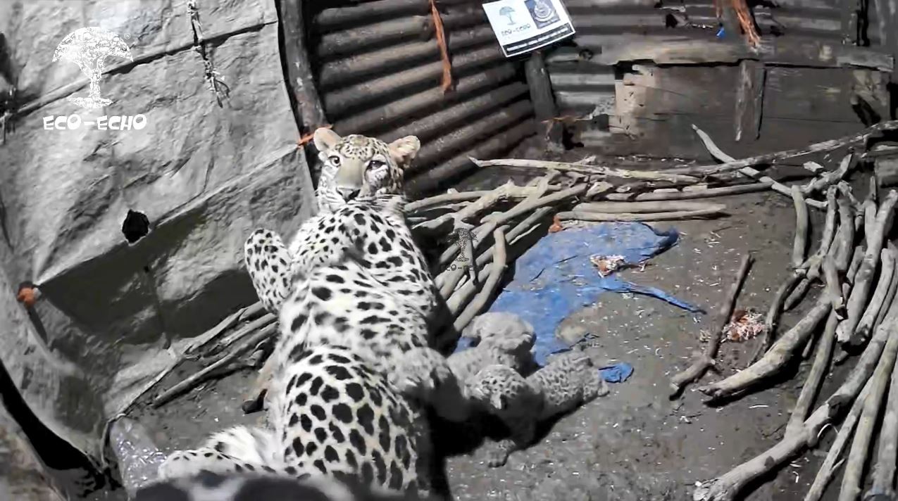 ▼Eco Echo趁豹媽媽不在裝好監視器,並確認4隻豹幼崽的身體狀況。不久後豹媽媽就回來了,原來牠去附近的農場抓了幾隻雞。動保團體跟村民們溝通,希望這段時間他們能跟豹和平共處。森林局還派人守住農舍,防止有人不小心闖入,讓豹受到干擾。