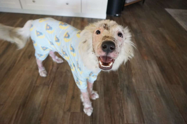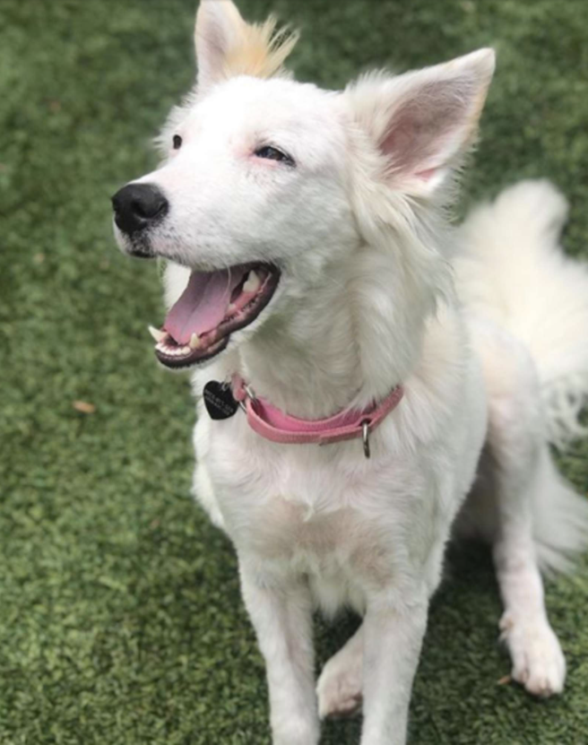 ▼經過藥物治療,Gardenia的皮膚狀況逐漸改善。但曾經的流浪經歷給牠造成深刻的影響,牠敏感、膽小,也不知道該怎麼跟人類親近。直到Gardenia身上的毛漸漸長出來,牠才變得自信起來。Caitie說:「牠逐漸露出笑容,還開始玩球,也會跟家裡的其他狗狗一起玩了。」