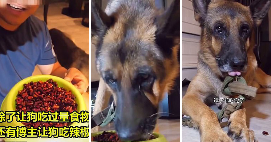 大胃王遭禁!實況主竟改逼狗吃「辣子雞」 大德牧吃到淚流滿面