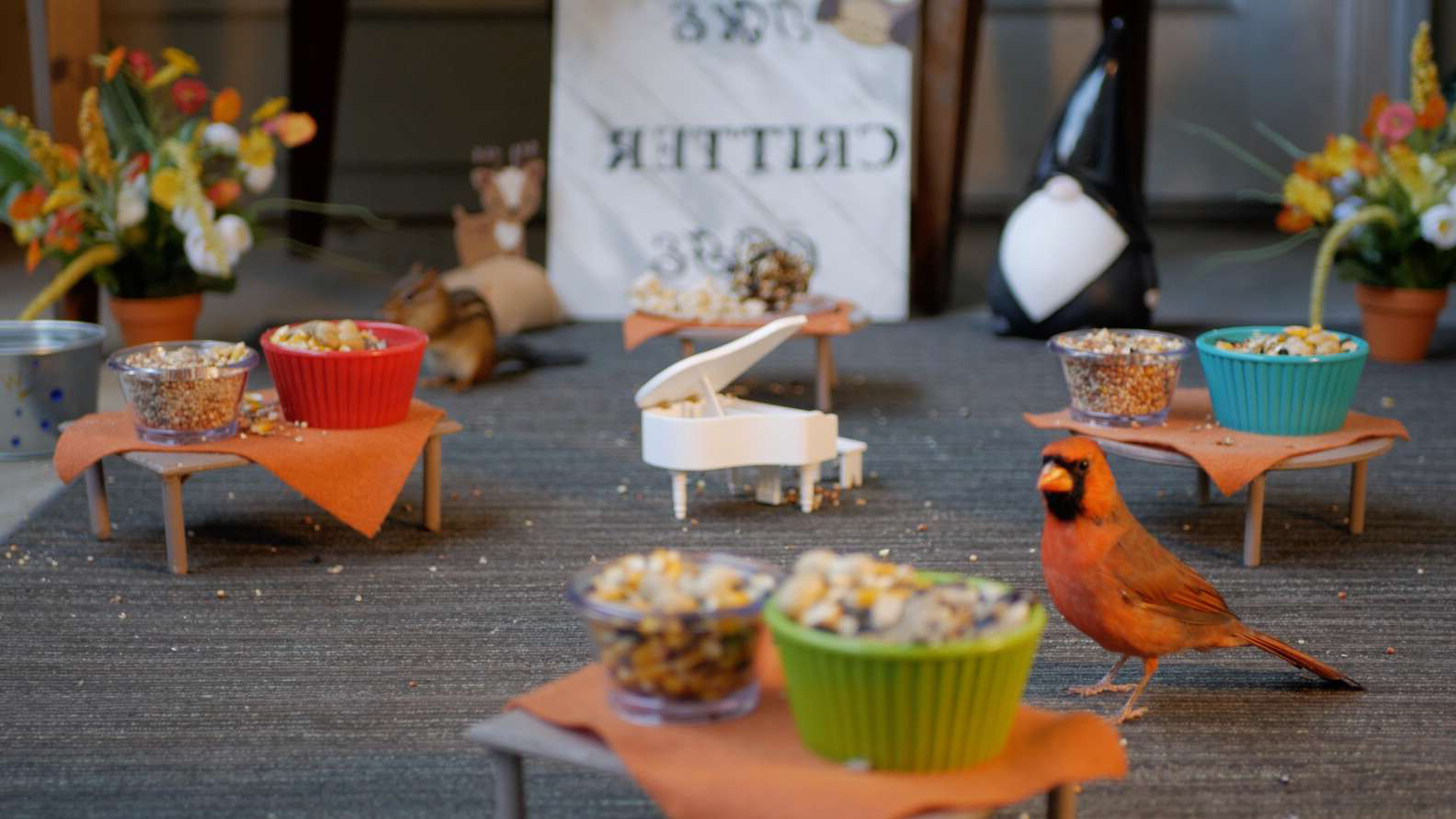 2021年10月01日美國一對夫妻Aby Cruz和Jeremy Mercer在自家開設了一間露天迷你咖啡廳。這間咖啡廳不招待人類客人,反而是小鳥、小松鼠的天堂。店長也不是人類,而是這對夫妻養的寵物貓Pumpkin。兩位鏟屎官表示,他們之所以會開這間咖啡廳,完全是Pumpkin提供的創意~