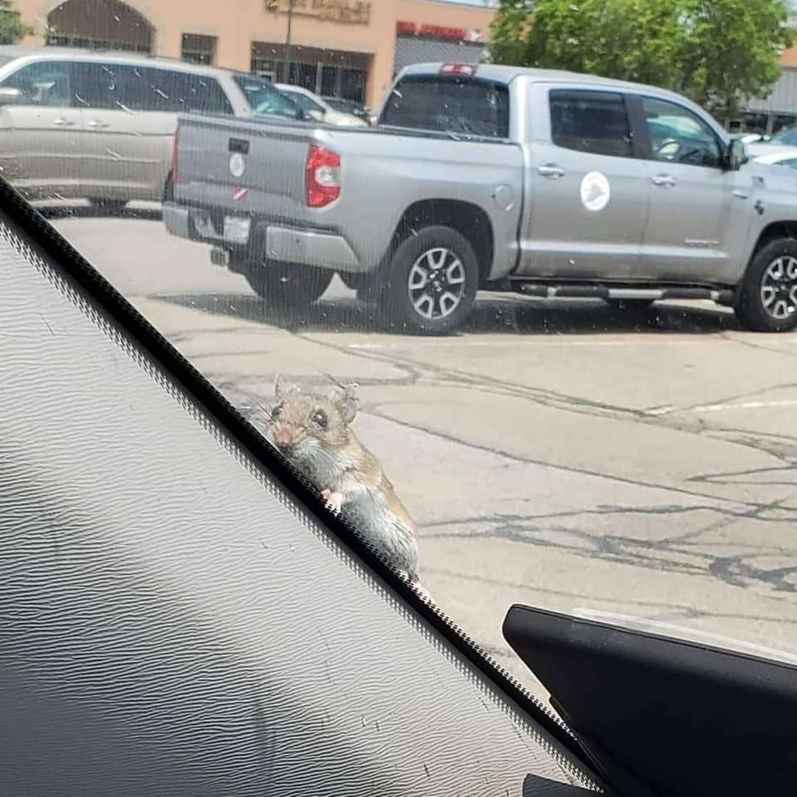 開車去超市!驚見窗外有「搭便車小老鼠」 困惑往內看:這裡是哪裡~
