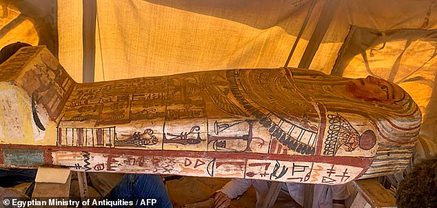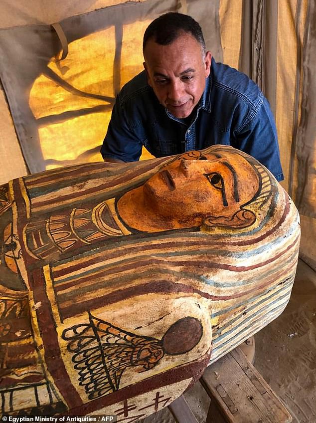▼埃及官方表示,這一發現是同類發現中最大的一次。初步研究表明,這些棺材出土時處於完全密封的狀態,自從下葬後就再也沒有打開過。棺材保存完好、色彩鮮豔,價值極大。