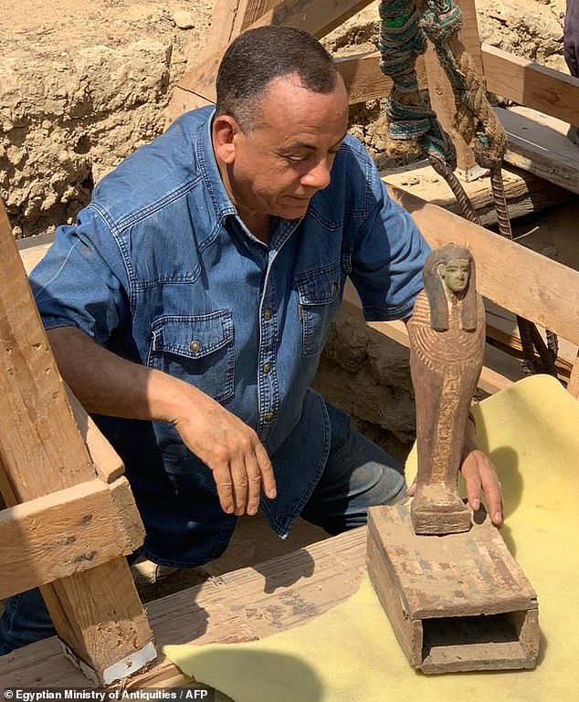 ▼埃及文物部長Khaled al-Anani親自參觀遺址後才宣布這一重大發現,他感謝工作人員在11公尺深的井下、在如此艱苦的條件下工作。