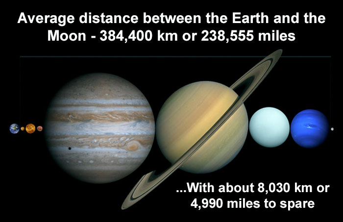 ▼​地球和月球之間隔著384,400千米,中間可以排下太陽系中的7顆行星。
