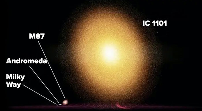 ▼​銀河系很大?跟IC 1011比起來,它也只是一個小光點。IC 1011是位於艾伯耳2029星系團中心的一個超巨大橢圓星系,距地球大約10.4億光年。