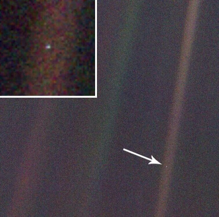 ▼​在距地球40多億公里的海王星上看地球,也能隱隱約約看到一個光點。