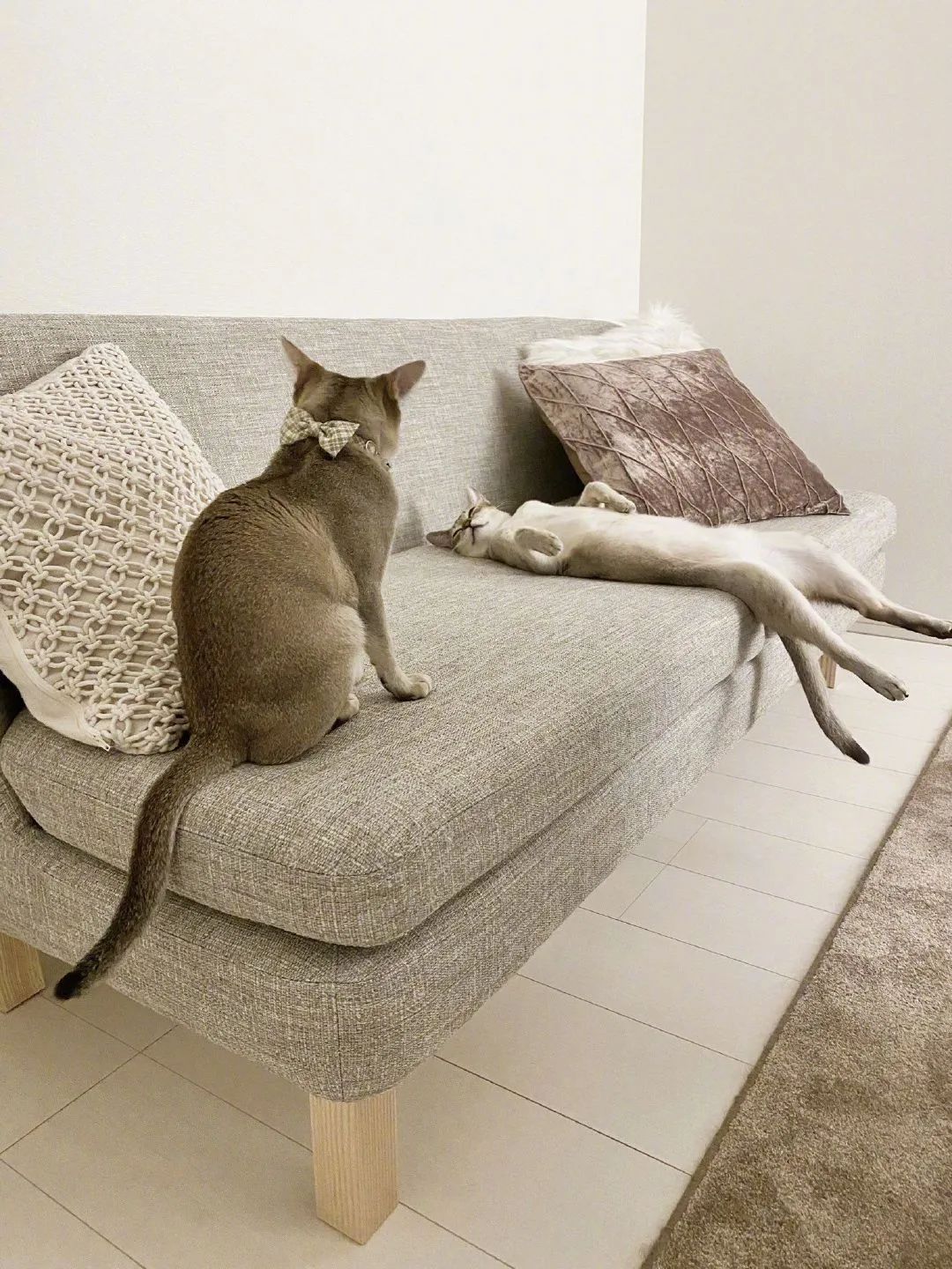 ▼貴島明日香家中有2隻貓咪,另一隻貓咪坐在旁邊,看著睡得灑脫的同伴,似乎很傻眼。牠應該沒想到貓咪也能睡成這樣吧。
