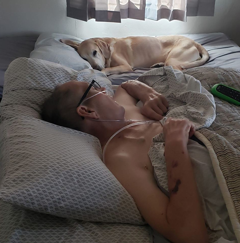 ▼近年來Daniel的病情持續惡化,Gunner也漸漸年長,身體狀況大不如前。後來Gunner罹患一種罕見病,導致腿部腫脹,無法正常行走。家人帶牠回診時,獸醫告訴他們已經無法救治,「讓牠安靜睡去吧」。