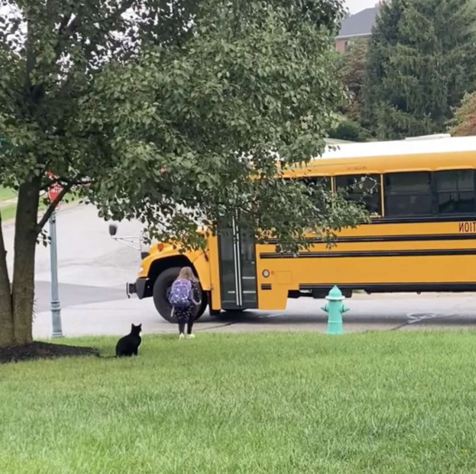 ▼剛開始小主人搭校車去上學時,Craig會跑到家門口著急地喵喵叫。Jessica覺得很奇怪,於是決定打開門,讓貓咪能夠親眼看到小主人上校車。沒想到久而久之,陪伴小主人等校車竟成為了Craig的慣例,這也讓牠成為了當地的名貓。