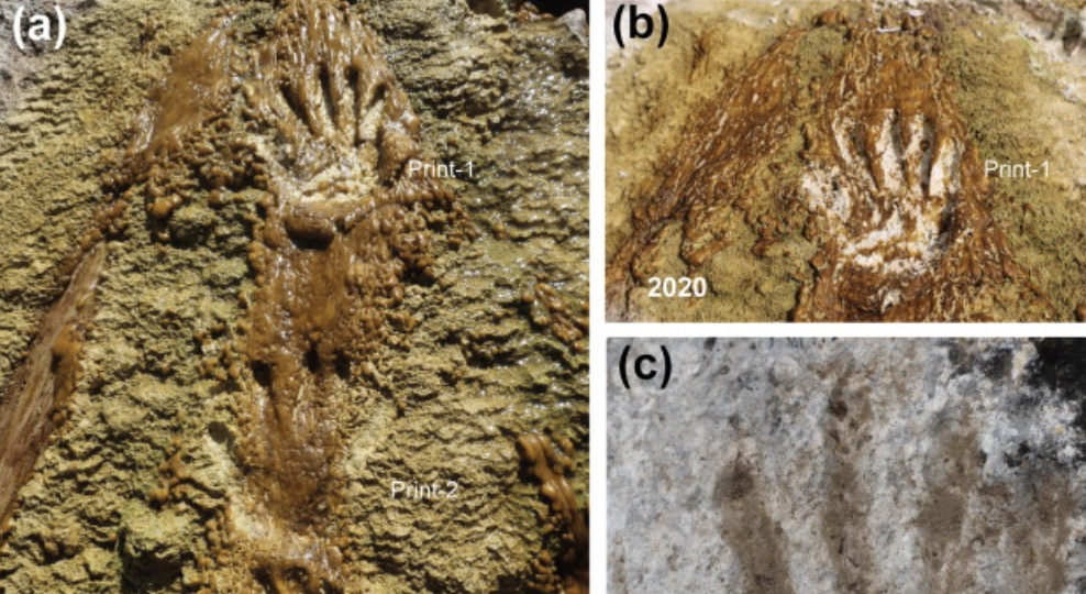 2021年10月01日日前一個國際合作研究組在青藏高原雀桑(Quesang)一處溫泉的石灰華裡,發現了一些史前時期留下的兒童掌印和腳印。石灰華是淡水受熱後沈澱凝結的礦物質,檢測顯示,這裡的石灰石可以追溯到公元前16.9萬年到公元前22.6萬年。研究人員認為,這些手印、腳印不像是無意間留下的~