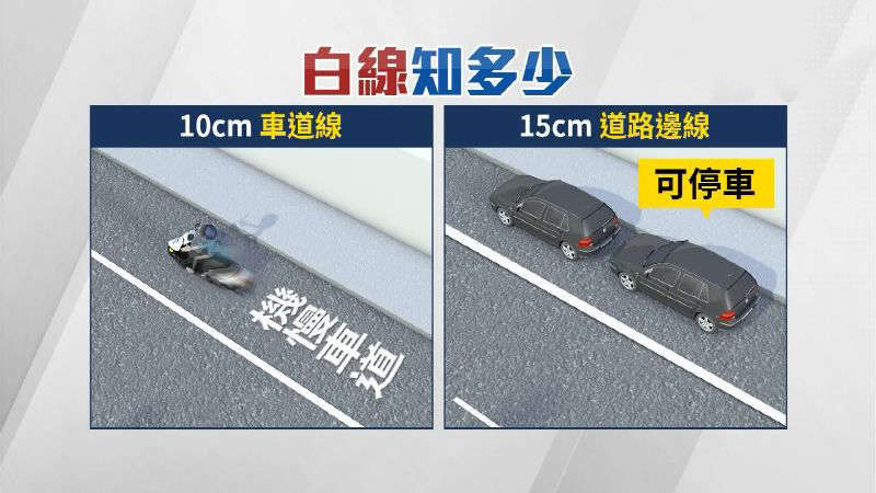 ▼霧峰警分局十九甲派出所長李銘卿解釋說:「開學護童的專案的部分,我們針對周遭的道路、交通有做一個違停車輛那個執法的動作。」警方表示,如果路邊白線有10公分寬,就是所謂的「車道線」,一旁是機慢車道,是絕對不能停車的;如果路邊白線15公分寬,這是「道路邊線」,一旁就能停車。