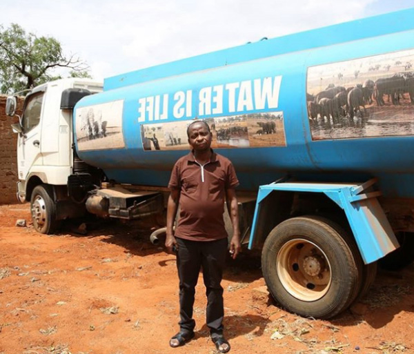 ▼Patrick是當地村莊的碗豆農夫,從小跟野生動物一起長大。有一次他偶然看到一頭水牛正不斷嗅已經乾涸的水池,這讓他意識到,動物們急需飲用水。因此他租了一輛能夠容納1萬公升的水車,每天開車到70公里外的地方蓄水,再載到國家公園中灑水。