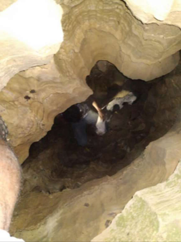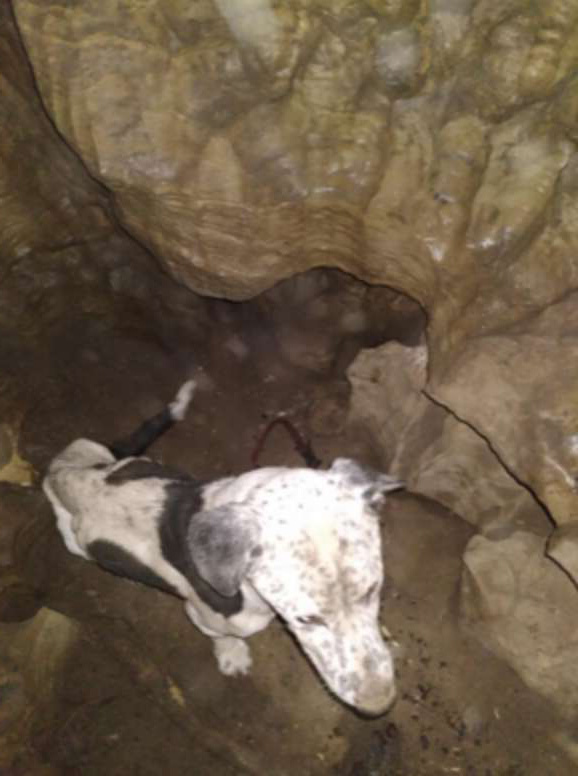 2021年10月06日日前國外一群徒步者去印第安納州的「Dewey Hickman Nature Preserve」旅行時,發現一隻狗狗被困在一個又窄又深的洞穴裡。洞穴深約9公尺,狗狗無法自行爬上來,而且牠身體瘦弱,可能已經被困好幾天了。如果沒有人救牠,牠根本無法活下來。