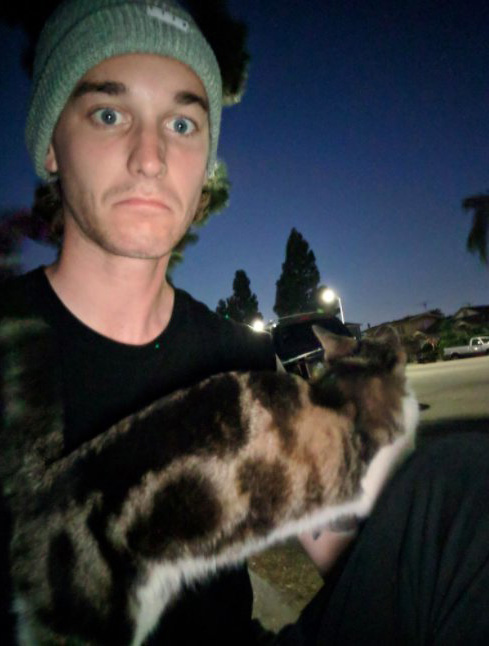 ▼Connor沒想到小貓這麼熱情,被牠嚇了一跳。但他很開心能交到一個毛孩朋友,於是跟小貓玩了一下。這隻小貓非常瘦弱,身上髒兮兮的,還有跳蚤,顯然在街頭生活一段時間了。Connor沒準備養貓,他想要離開時,小貓竟發出了嬌弱的喵喵叫聲。