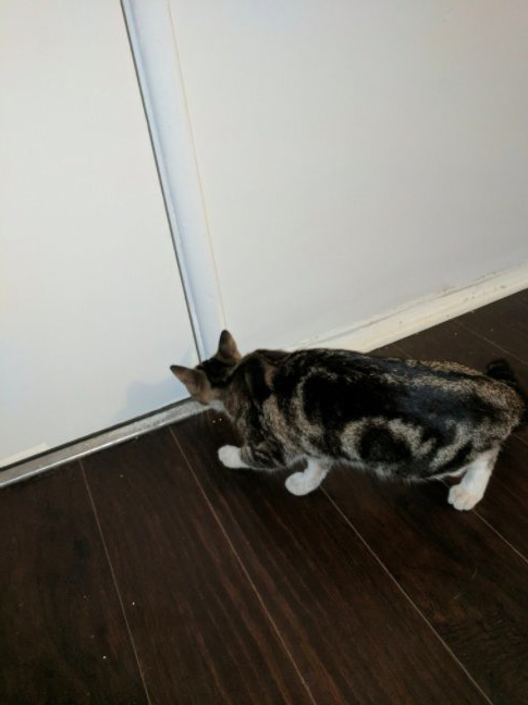 ▼Connor開門後,小貓毫不客氣地走了進去。牠在屋子裡到處探索、東看西看,好像在判斷要不要當這家的寵物。