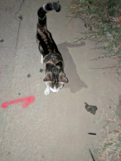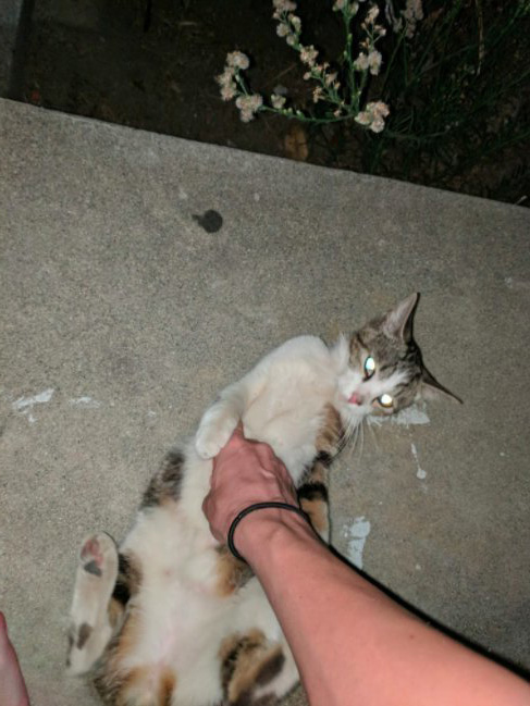 ▼小貓雖然自來熟,但還是有點不好意思,那晚牠睡在了庭院裡。