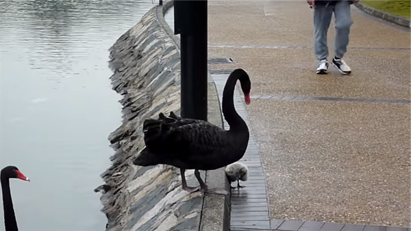 2021年10月07日動物父母帶小孩也很辛苦~最近一段有趣的影片在網路上流傳。影片的主角是一個黑天鵝家庭,那天天鵝爸媽準備教小天鵝游泳,但小天鵝不想學,牠不敢跳下水,不管爸媽怎麼叫,都堅持待在岸上。天鵝爸媽很無奈:「游泳是必須學會的技能啊。」