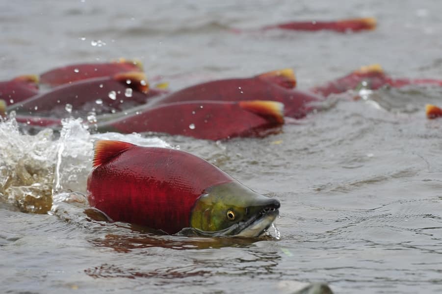 是辣椒在游泳? 河面「整面紅色」真相卻超感人:這是壯觀的生命循環