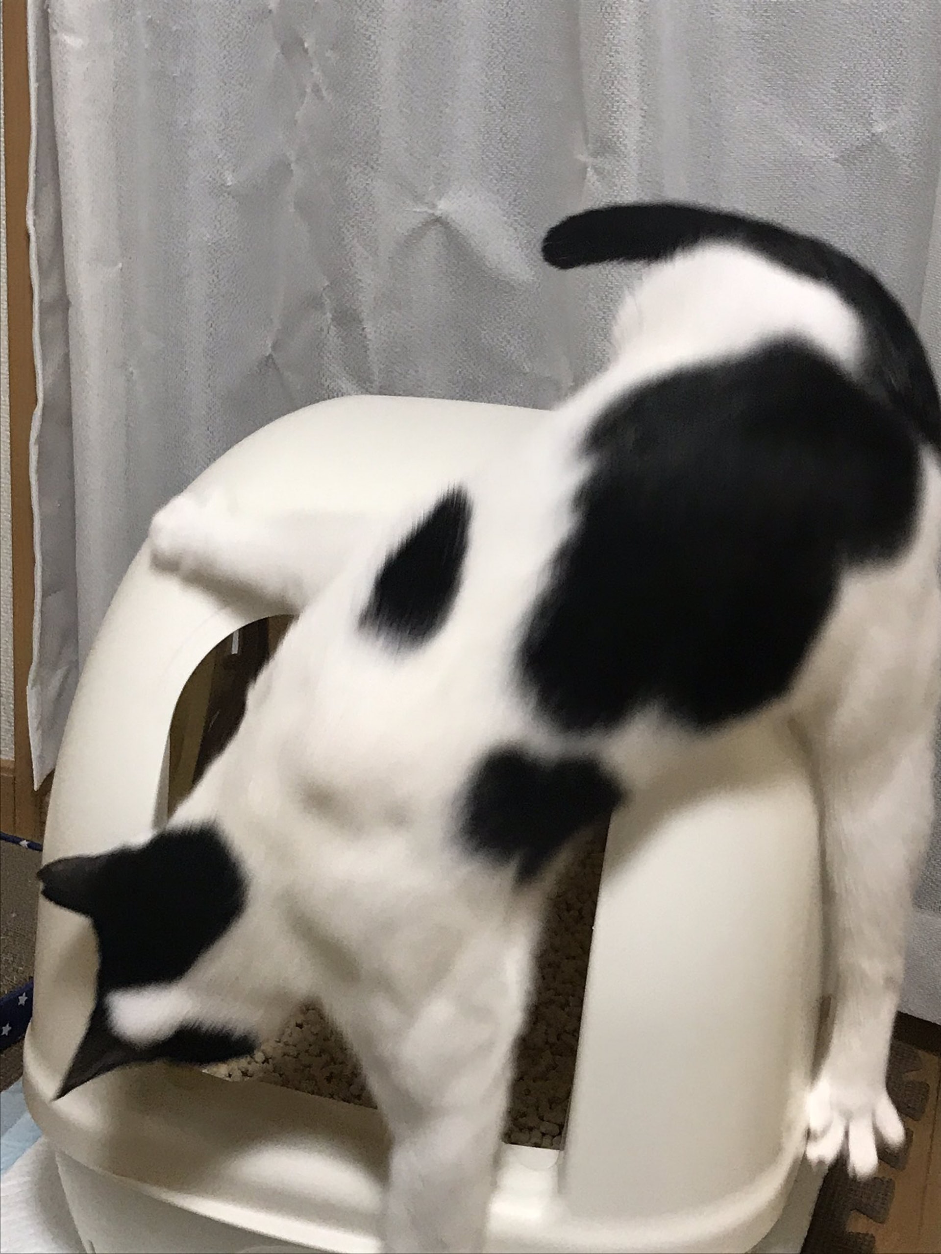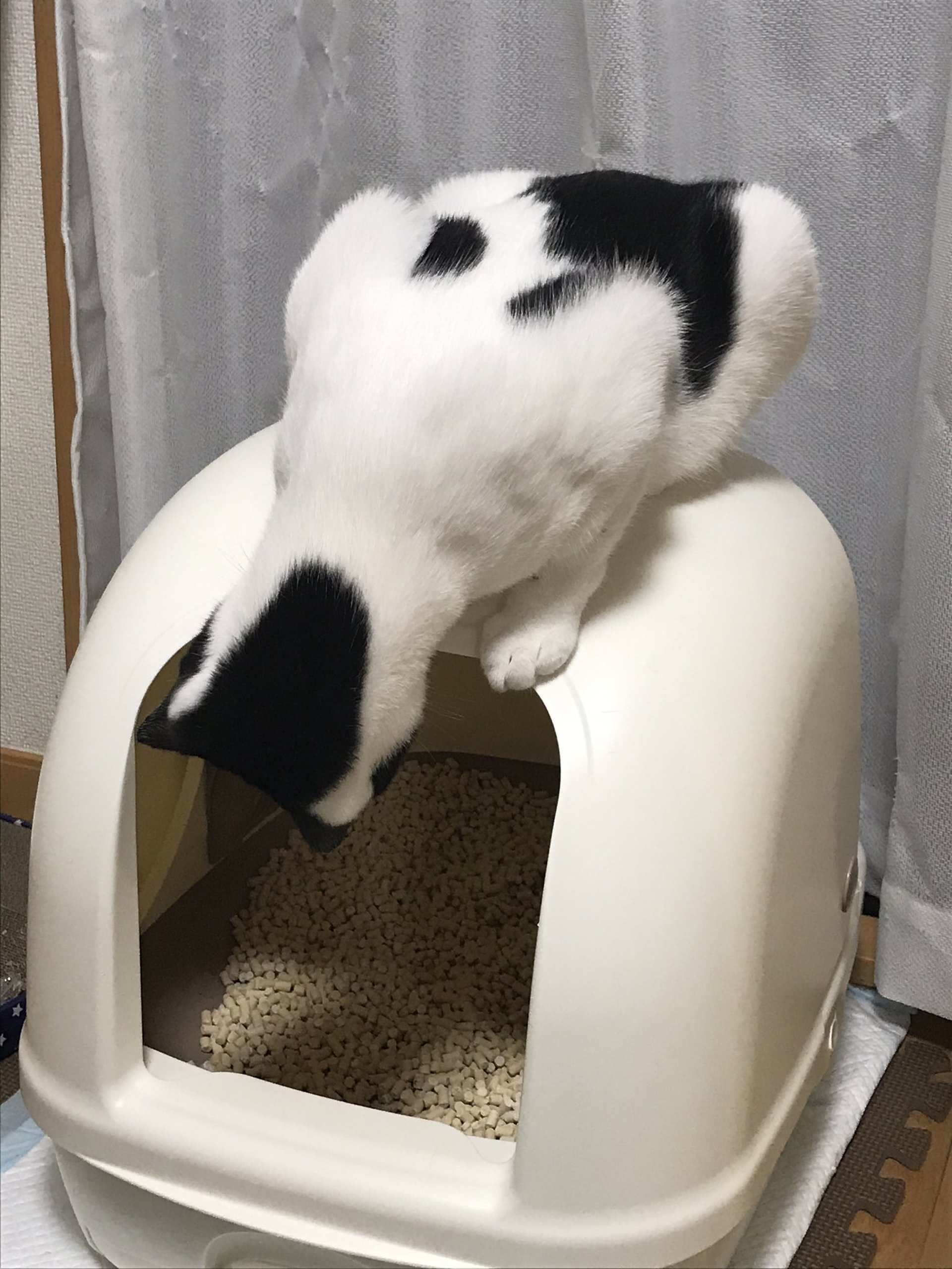 ▼「想說牠又來了…轉頭一看結果竟然從貓砂盆上滑下來(笑)」