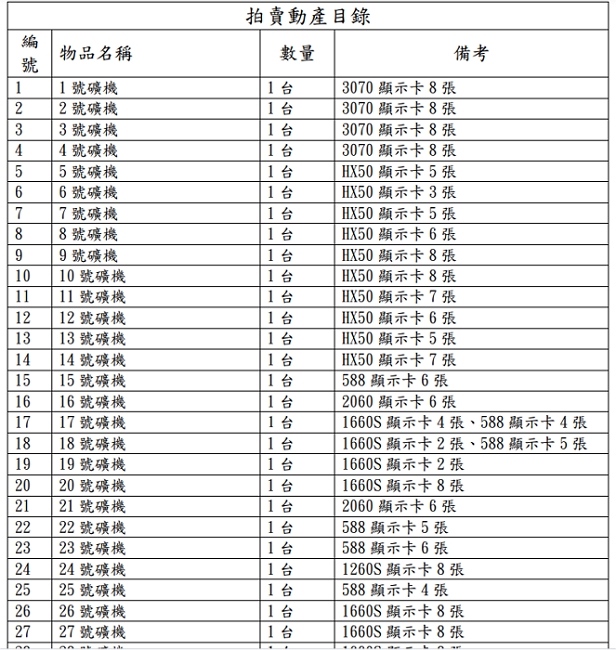 士林分署「10月拍賣會」成礦場! 含44台挖礦機、泰達幣、以太幣