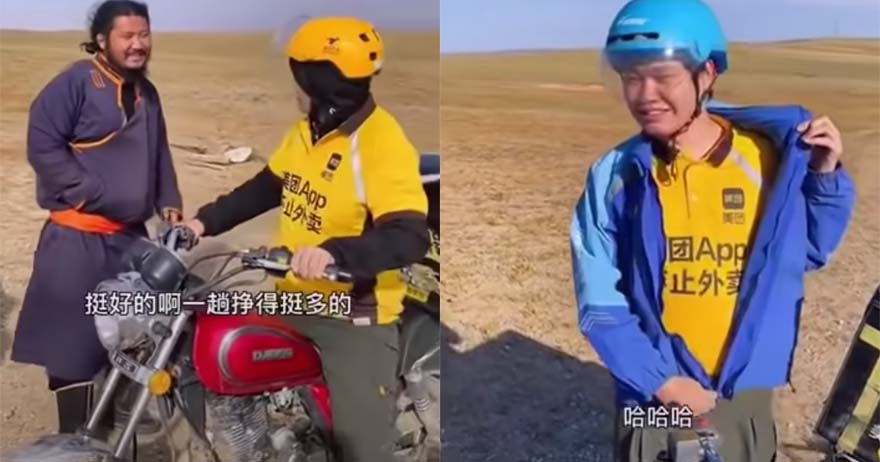 疫情開始後,越來越多人習慣線上點餐,外送員成為了一種新興行業。大陸有一名牧民網紅「寶魯日」,他在抖音拍了很多實測影片。日前他想測試內蒙古大草原會不會有外送員送餐,沒想到真的有外送員接單!對方花4個小時、騎行202公里,才將餐點送到寶魯日手上~