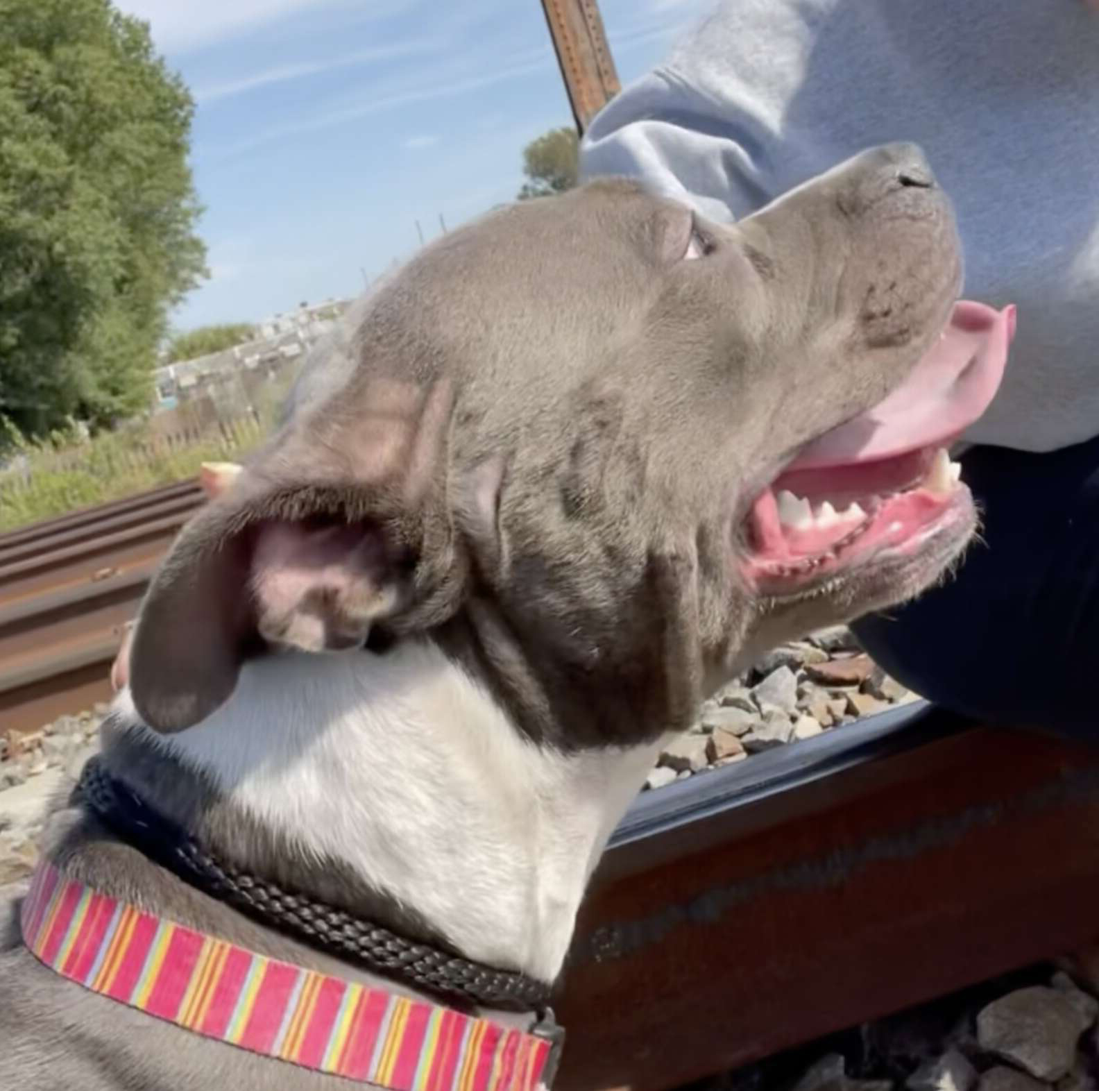 2021年10月29日國外網友Nina Love在臉書上看到一則訊息,一隻灰白色鬥牛犬被遺棄在鐵軌邊的公園裡。火車每10到15分鐘就會駛過一列,狗狗慌亂之中很容易受傷。Nina連忙跟住在附近的朋友聯絡,幾人一起前往公園救援~