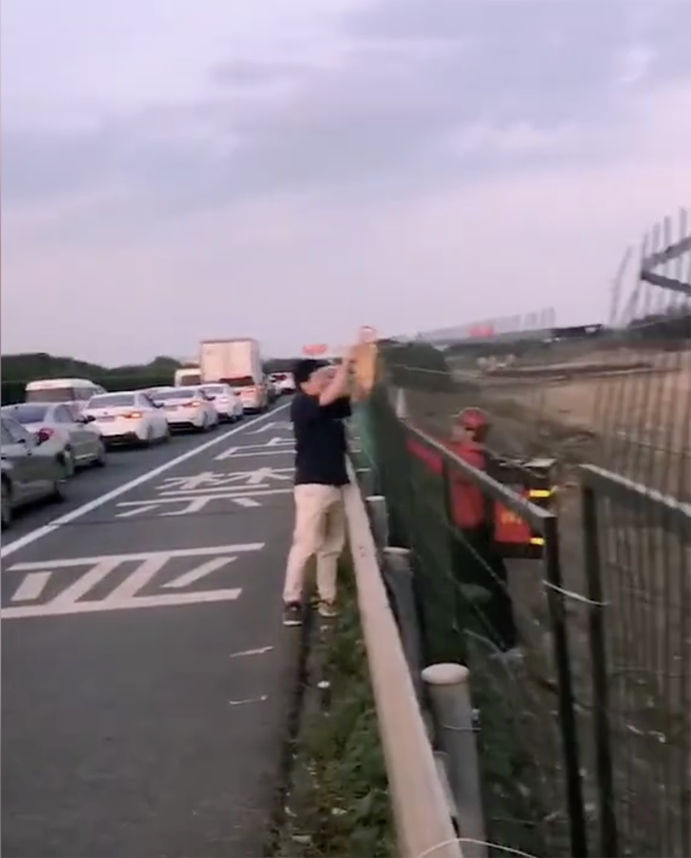 ▼連假期間太多人出遊,很多地方都出現車潮,有時會塞車好幾個小時,甚至一整晚。被堵在路上的民眾想出很多花招來消遣時間。近日就有人拍到麥當勞的外送員到高速公路上送餐的畫面。