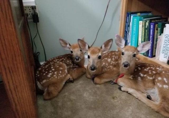 ▼一名女網友為我們分享了這個溫馨的故事。她平時就很照顧附近的鹿群們,因為暴風雨要來臨了,她十分擔心這些可愛的小傢伙,她出門去找看這些小傢伙有沒有安頓好,卻沒有發現牠們的身影。結果當她回到家,發現小鹿不知道什麼時候從後門悄悄溜進家中來避難了!
