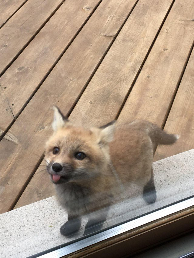2021年10月20日有特別的客人來拜訪~日前美國伊利諾州的一位網友在奶奶家拍到了一組超萌的照片。只見2隻狐狸寶寶跑來玩,牠們在門廊上跑來跑去,還趴在門窗邊好奇地往屋內看,甚至吐舌頭賣萌,好像在說:「有食物給我們吃嗎?」那可愛的畫面讓人心都要融化了。