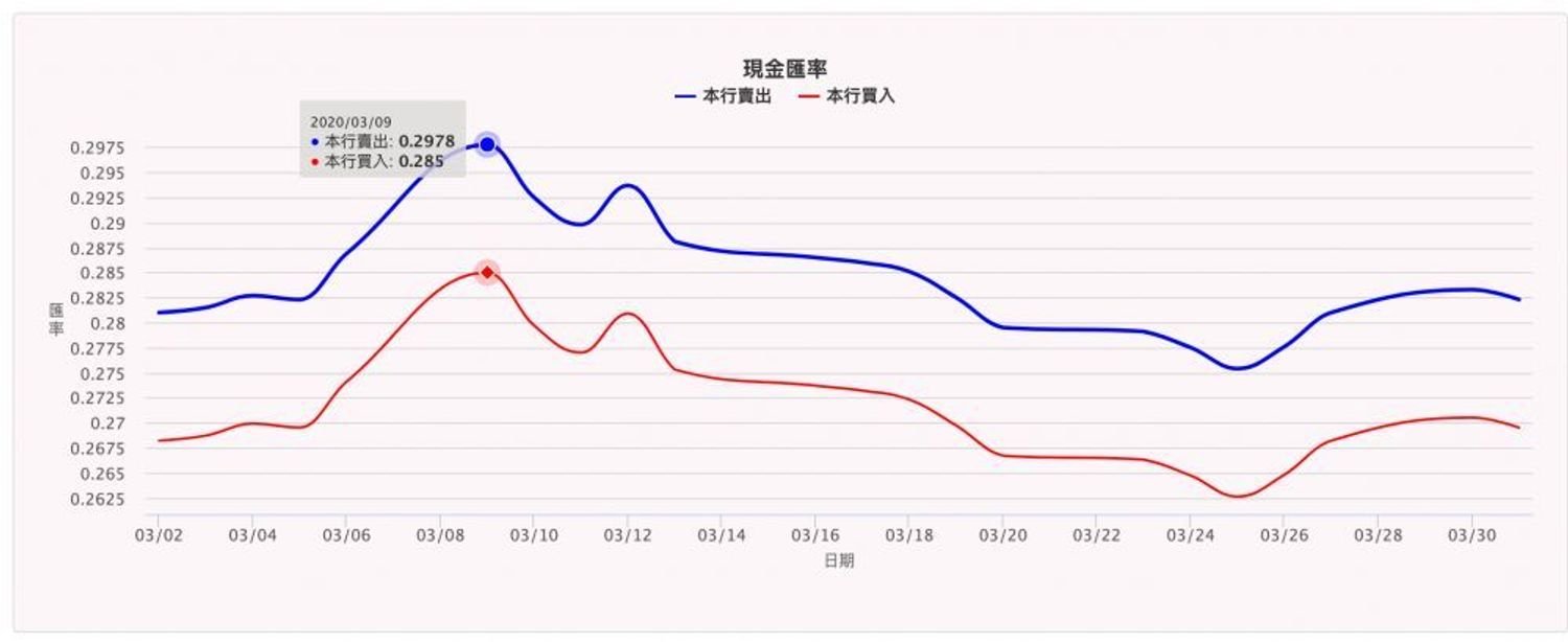 ▼兌換日幣的方法非常多,去機場分行臨櫃、外幣提款機、銀行等等都可以,24小時線上換匯也很方便。如果出發前沒有時間跑銀行,又不想在機場兌換的話,可以考慮使用銀行推出的線上數位帳戶APP,使用相關兌換外幣功能,換取到滿意的匯率價格。