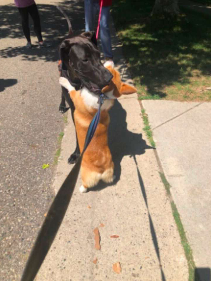 「很高興遇見你!」小柯基散步遇誰都要抱 見大丹犬「小短腿踮超高」