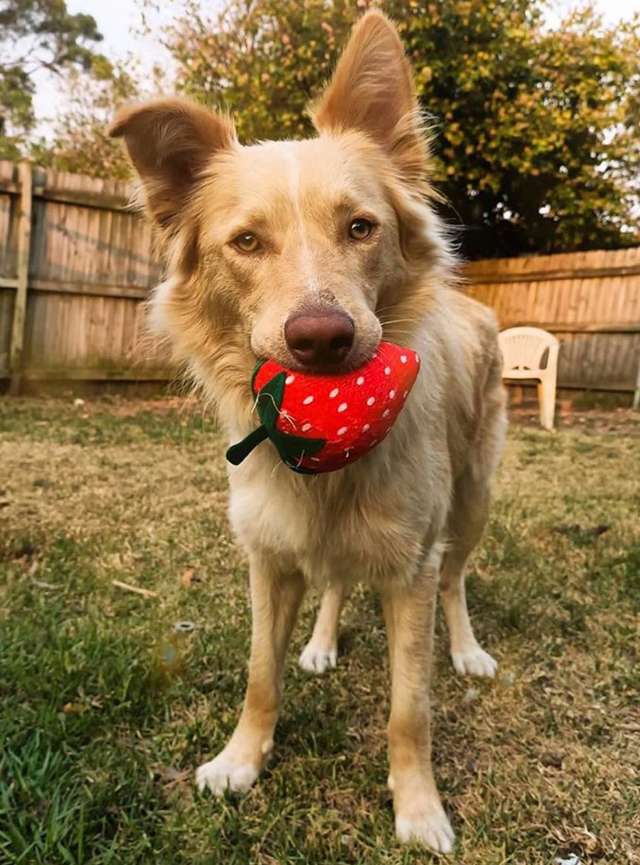 2021年10月22日美國有一隻叫Marley的狗狗,牠是一隻服務犬,陪伴主人Hayley Martin度過了很多低潮時刻。1年前,Martin送給狗狗一個草莓造型的玩具,Marley非常喜歡這個玩具,不管走到哪裡都要帶著。有一次牠不小心把玩具掉進泥水裡,清洗後還是髒兮兮的,Martin只能丟掉了。